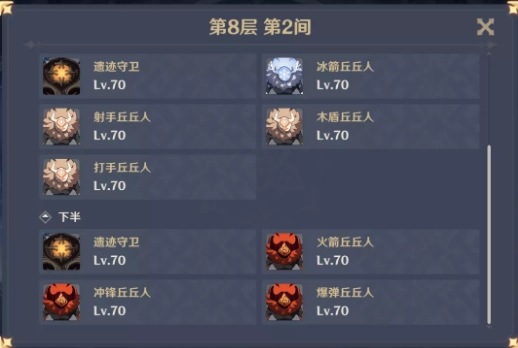 最初会出现1冰箭丘丘人,1射手丘丘人,遗迹守卫。