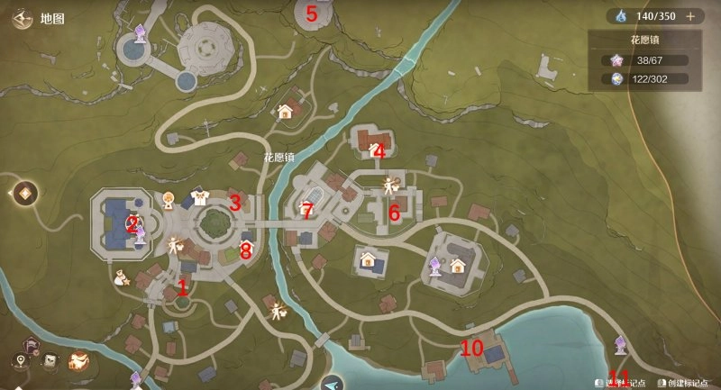 当前,花愿镇的11个小游戏,依照民俗手册的顺序,分布于上图的11个位置。若有玩家尚未全部解锁这些小游戏,不妨前往解锁。