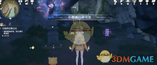 换上套装后,暖暖能变小趴在大喵头上,穿过山洞,沿着山洞一直前行就能到达祈愿树林。