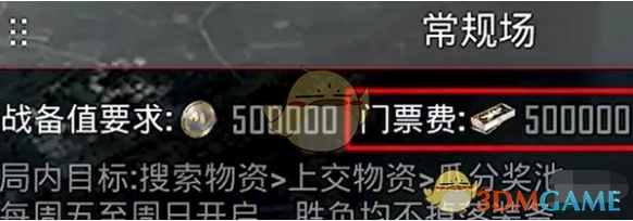 2、战备值的最低要求为50万,门票价格是50万地铁币。