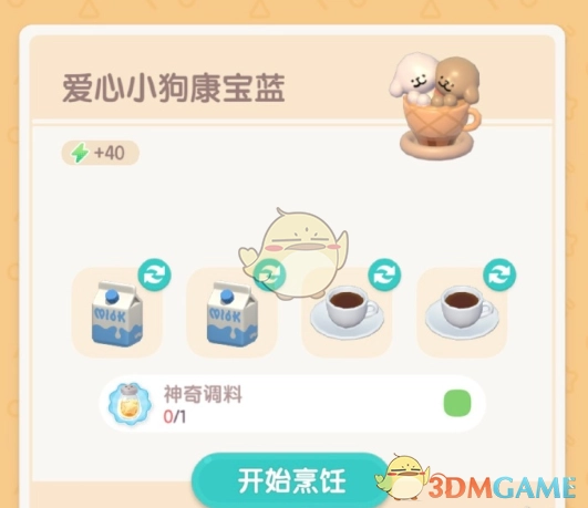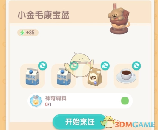 小金毛康宝蓝所需材料为:牛奶两份、咖啡豆一份、咖啡一份