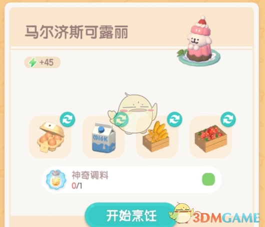 马尔济斯可露丽的制作材料为:鸡蛋1个、牛奶1份、麦子1份、草莓1颗