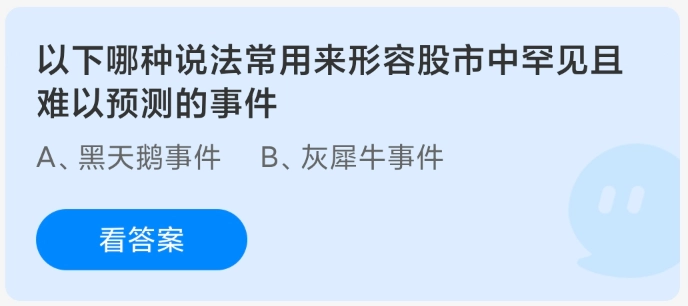 题目:以下哪种表述常被用于描述股市里罕见且难以预估的事件?