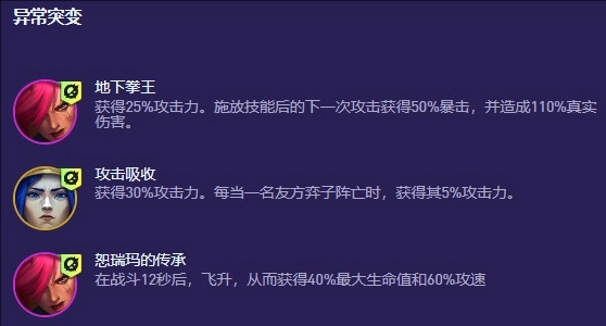 攻击力提升25%。释放技能后的下一次攻击,暴击率达到50%,且造成110%的真实伤害。