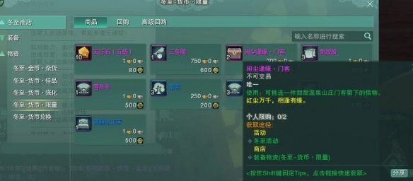 1. 开启冬至活动的商店,在其中找寻【物资】-【冬至·货币·限量】