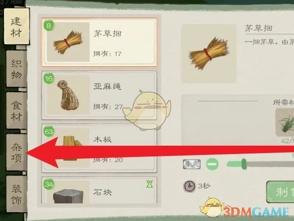 2. 在材料页面,点击左侧的“杂项”选项。