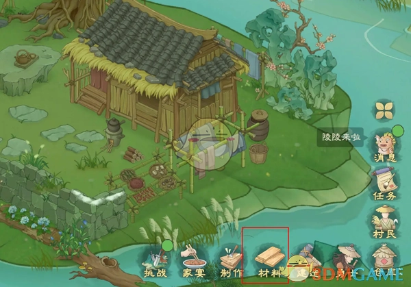 1、第一步,我们来到游戏主页,点击右下角的“材料”选项。