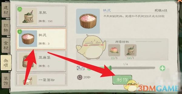 在《桃源记2》游戏中,种植时能使用各种肥料,如此可快速实现种植效果。其中,桃泥的效果极佳,能为不死树增加200点成长经验。桃泥需通过消耗材料制作获取,那具体的获取方法是什么呢?接下来,让小编为大家带来《桃源记2》桃泥的获得方法,一起来瞧瞧吧。