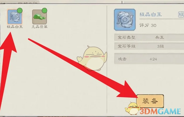 4、最终我们挑选极品白玉,点击右下角的装备就行。