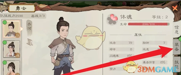 2. 在勇士页面,接着点击右侧菜单栏中的第二个装备选项。