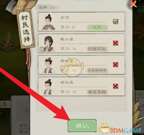 2. 随后选中葛草,紧接着点击村民执行派遣操作。