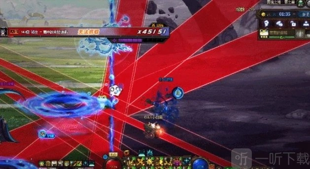 Boss锁定一位玩家,这位被锁定的玩家身上会出现竖线或横线,经过一段时间后,以该玩家所处位置为中心对场地进行切割,划分出生死领域,同时开始读条【生死发动】