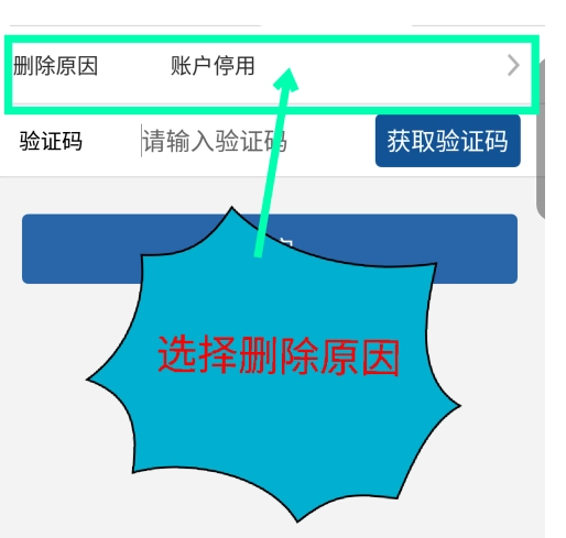 在账户删除界面,首先挑选删除原因,具体可参照图示。