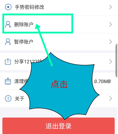 在设置页面,点击“删除账户”选项,具体位置如图所示。