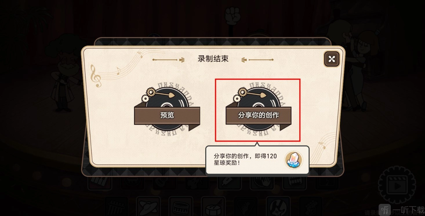 4、完成录制后,点击【分享你的创作】,接着进行分享就能获取星琼奖励。