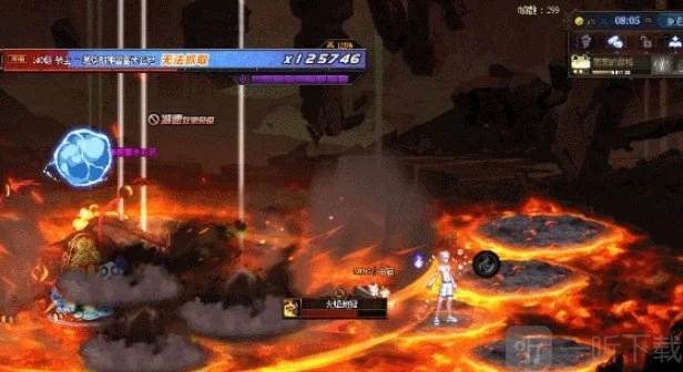 就在此刻,Boss启动了【火焰地狱】的读条,刹那间,全屏范围内涌现出岩浆,唯有地板区域是安全的。