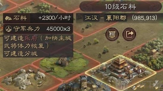 三级提升四种资源产量达2100,这等同于四块9级地的产出。升级则需10万三种资源以及20000铜币。