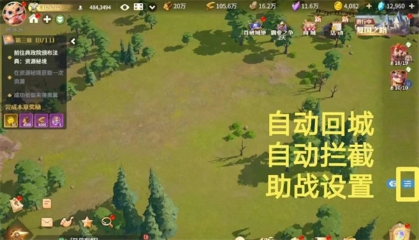 在龙石战争中,队伍能够开启“自动回城”“自动拦截”以及“助战设置”。