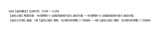 巢虫的初始生成时间从5分钟延长至6分钟。如此一来,小龙的生成时间会比巢虫更早,两种资源的出现时间得以错开。而且,6分钟时中上通常已达6级,但打野位仍处于5级,单人去偷巢虫的风险大幅提高(此时巢虫生命值约1750)。另外,如同设计师在更新日志里提到的,下路换线到上路争夺巢虫的可能性有所增加。