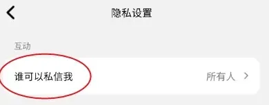 前往隐私设置处,找到“谁可以私信我”选项并点击进入。