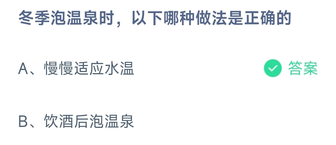 题目:在冬季泡温泉时,以下哪种行为是正确的呢?