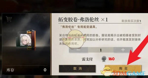 4、最终花费160枚虚妄银币,就能购买得到弗洛伦丝的拓变胶卷。