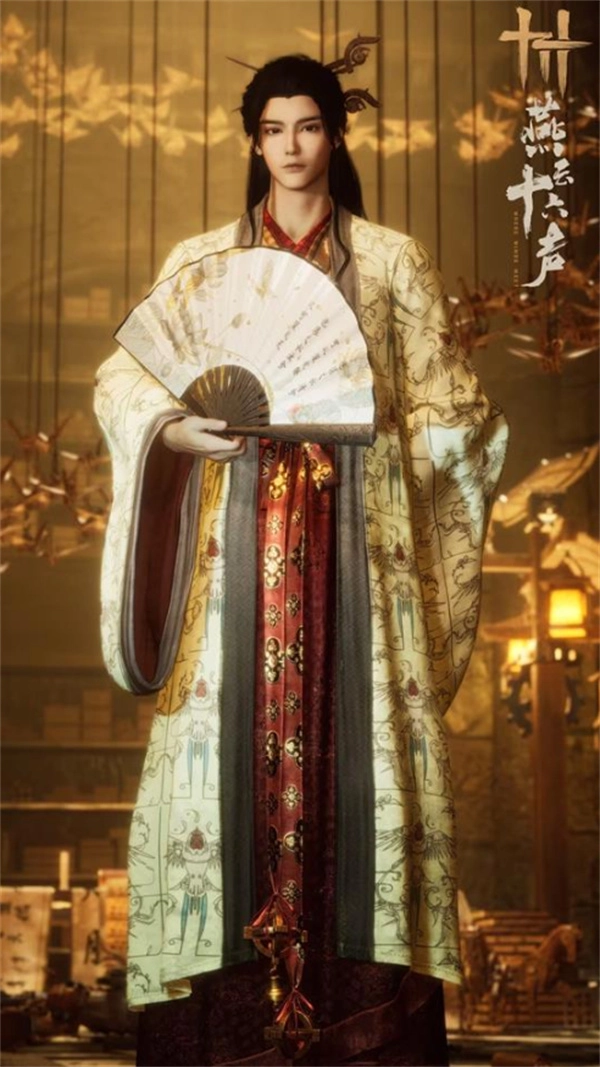 衣袍上满是木鸢纹样,寓意着展翅远游