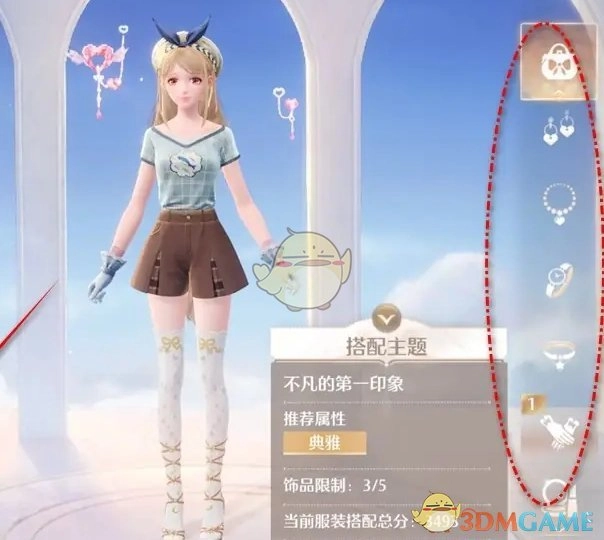 3、不凡的第一印象挑战设定的主题为典雅,需挑选带有典雅标签的衣服与配饰来进行搭配。