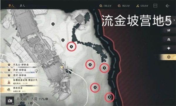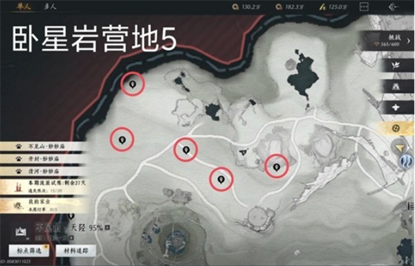 晦谷前往卧星岩的路线中,共有4+1个宝箱(需注意,其中一个位于山体之上,不确定在未修建轻轨时是否存在),探索点数量为15个。