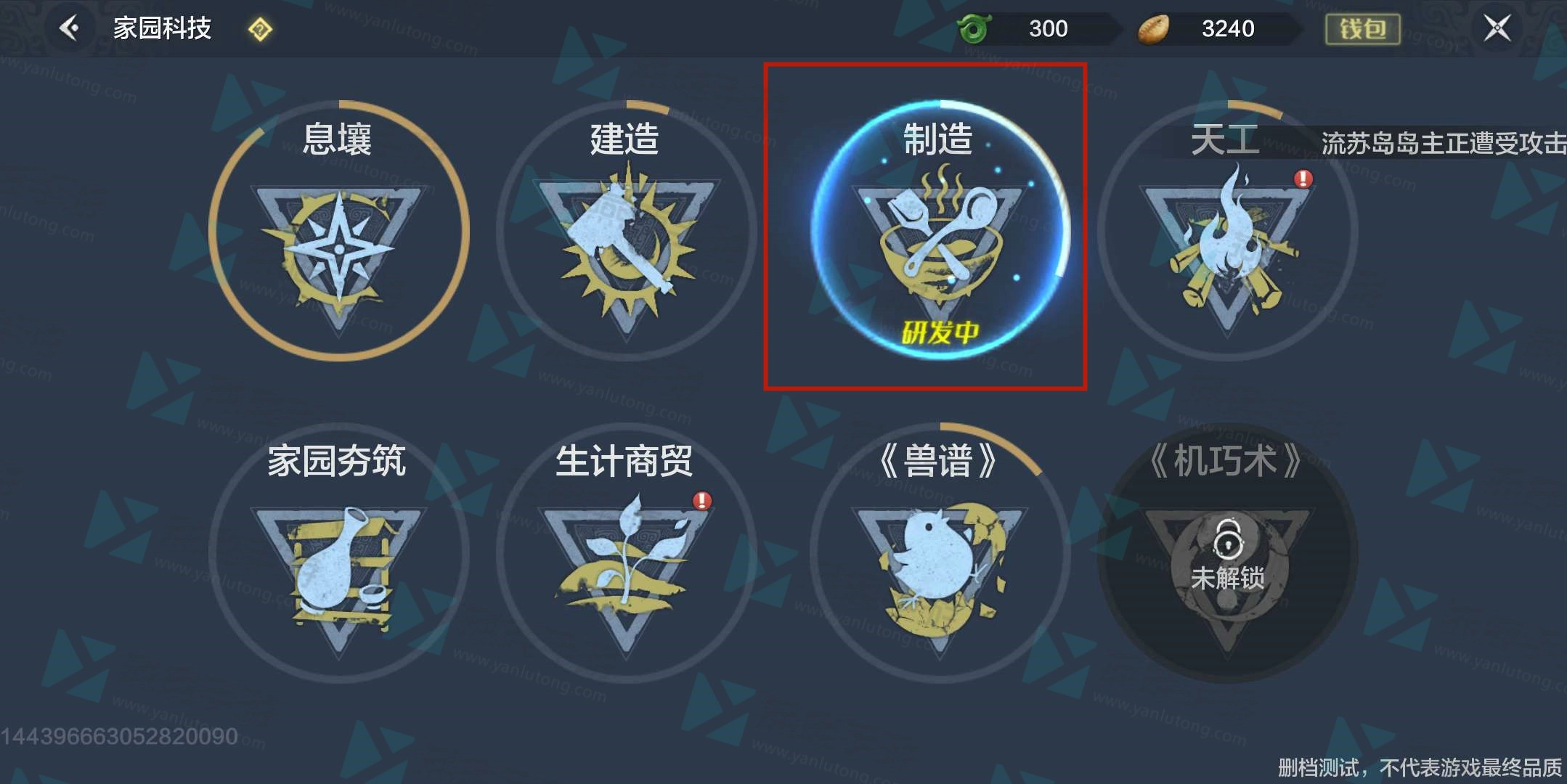 第一步:首先回到家园,走到息壤附近,点击图中画圈的科技按钮。