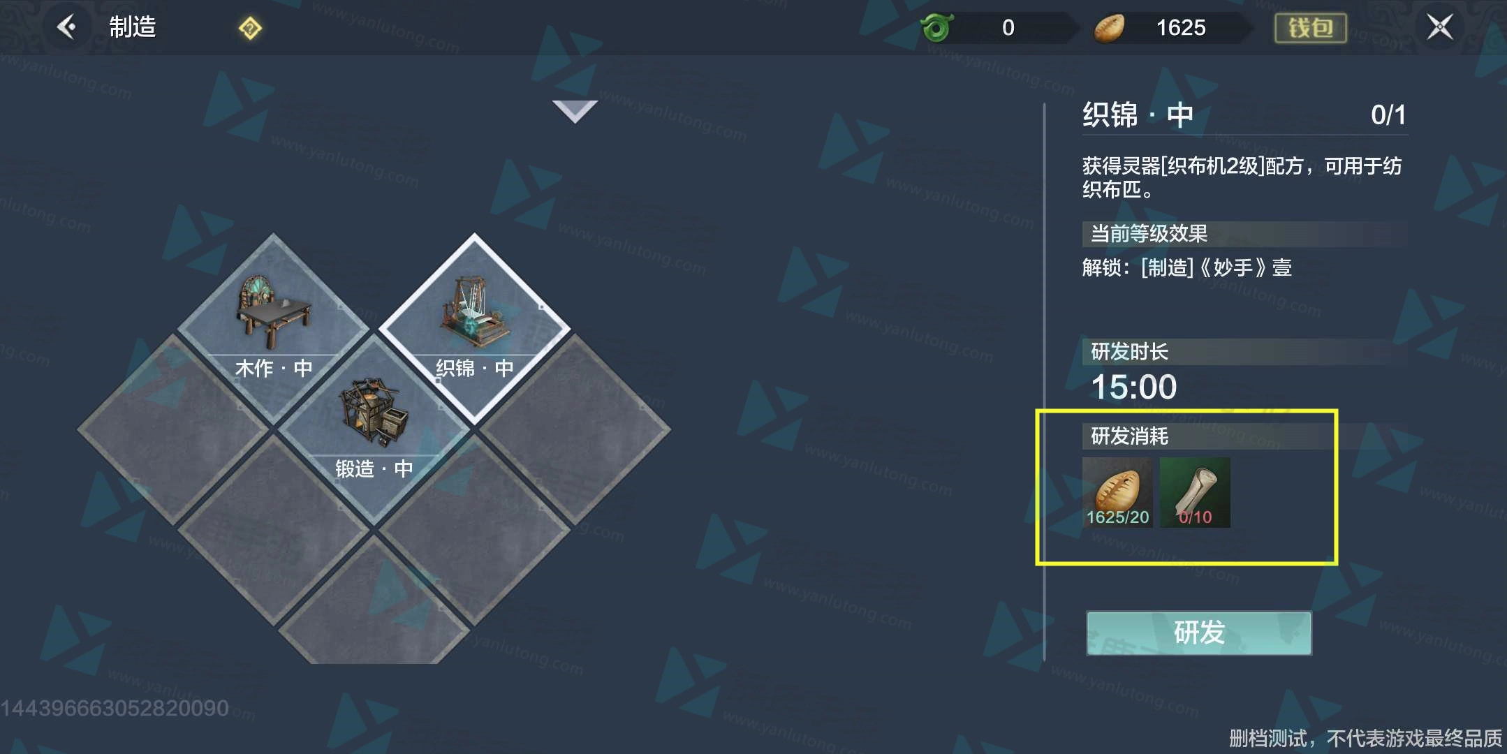 第四步,前置任务为织锦与锻造,需消耗精良布料及石头,分别要在织布机与锻造台操作,每项操作耗时15分钟。