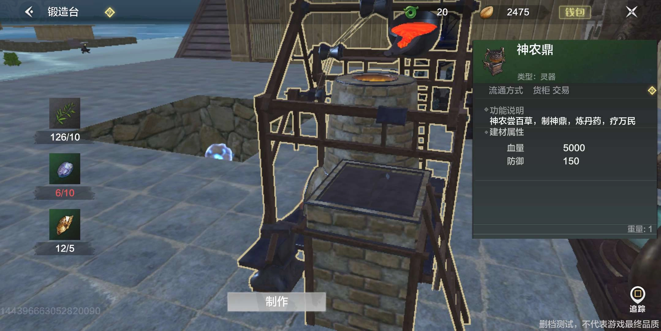 最后一步,当所有前置任务都完成后,还需准备好神农鼎的制作材料,前往锻造台制作神农鼎。