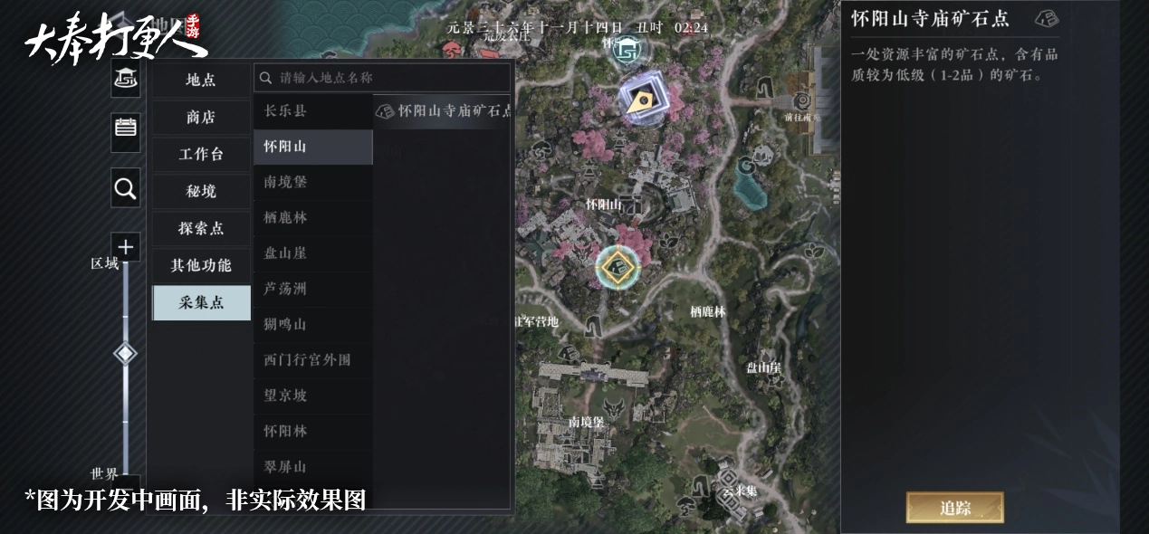 资源点于大奉各地分散分布,少侠们需自行寻觅。其实,寻觅资源点并非难事,只需打开地图界面,在周边点击对应的资源图标,亦或是运用放大镜功能,于资源点列表里找寻所需资源,选中后开启追踪,便能自动寻路前往该地点展开采集。