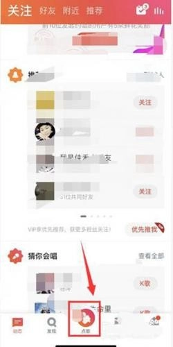 2、登录成功后,点击首页底部中间位置的K歌按钮。