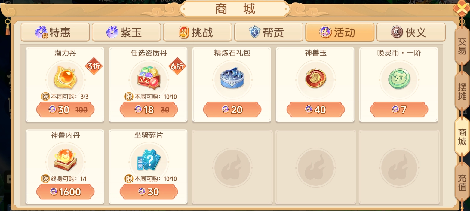 在游戏商城中,除了特惠商城与紫玉商城,还有形形色色的积分商城。于积分商城里,能够兑换各类道具,助力我们提升战力。活动积分主要涵盖以下4种,即挑战积分、帮贡、活动积分以及侠义积分。接下来,为大家分享《离火之境》各类积分的获取途径与小技巧!