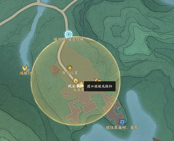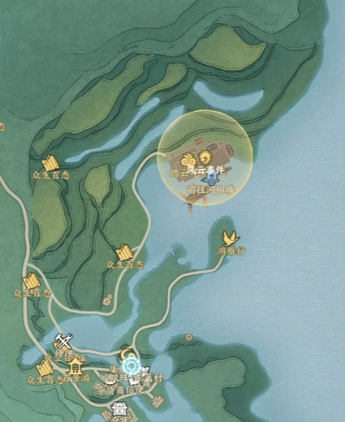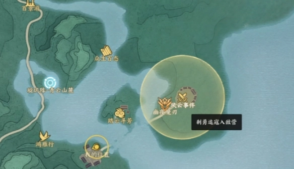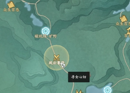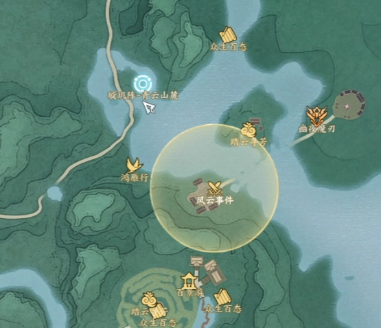 此事件是歹人急攻云津危的后续事件,需在原地等候事件刷新。任务刷新之后,打开地图查看事件更新的位置,接着击杀小怪。