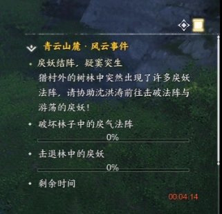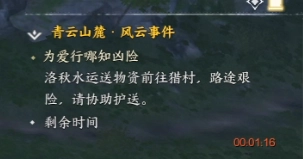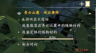 该任务紧接风云事件寻药未归恐遇难,原地等待事件刷新,收集材料。