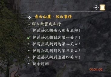 此任务在风云事件结束后,因未达成所求而不愿撤离,会留在原地等待刷新,随后需护送并跟随NPC,在护送的过程中将会触发三次战斗。