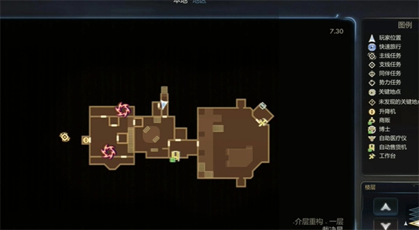 1、打开地图,定位“裁决星”区域,传送至介层重构一层的位置。具体位置可参考下图
