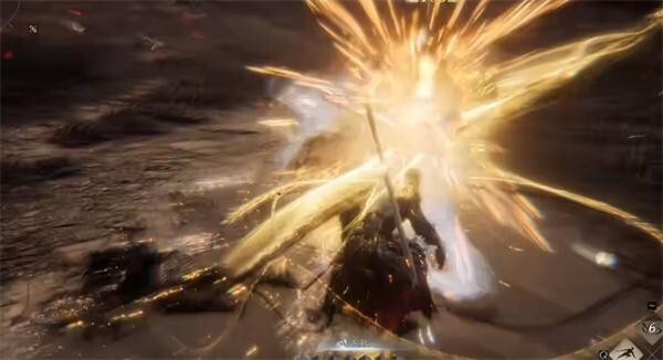 4、boss释放炸气技能后,紧接着的是衔接不算特别紧密的9连斩,具体是前三段地面斩击、后五段连续斩击,再加上最后一记跳劈。