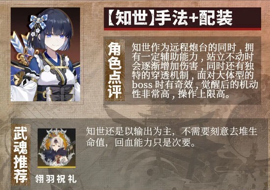 知世即便是站在原地不动,伤害也会持续叠加。在对抗大型boss时,她还具备独特的穿透机制,能让输出效率达到顶峰。关于武魂选择,首先要明确这个角色的核心定位是输出,所以没必要在生命值属性上投入过多资源。回血能力相对次要,优先拉满输出属性才是关键。因此建议大家直接选择“翎羽祝礼”武魂,这样可以有效提升整体伤害数值。