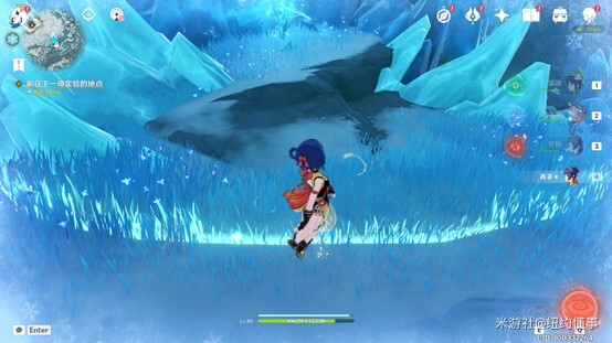 ※通常情况下,深赤之石被击破后会在原地短时间内重新生成。但在任务场景中,攻击其碎片一次后,刷新点就会被坚冰覆盖,导致深赤之石无法重生,只有打碎这些古代坚冰,才能让它恢复正常的重生机制。