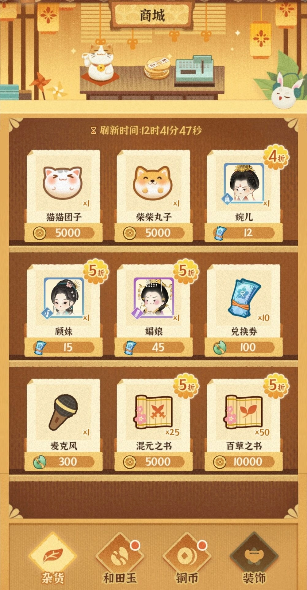 坊主能够在【商城 - 杂货】里选购柴柴丸子与猫猫团子,每日仅限购一次,商城的商品每天都会刷新。
