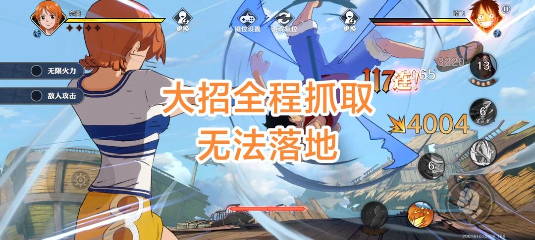 4、娜美大招具备全抓取效果,在大招释放期间,即便对面处于红保护状态,也无法替身,只能吃满大招伤害。大招结束后衔接2技能,会打出一个由下而上的连击,让对面无法落地。技能释放后紧接着普攻,还能强化2技能。到这个时候,对面的替身差不多就要开始闪烁了,不过,他们的血条也已经被我们清空啦!