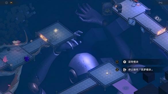 6、未能送出的时祷书:在橡木鸣蛀之梦的右上角隐藏区域,先与图中位置的筑梦遥眼交互,前往前方调整筑梦模块,使其指向右下方(状态如图所示);接着到右下角被黑色方块遮挡的位置,选择回收筑梦遥眼,就能抵达右上角的独立平台,这份阅读物就放在平台的桌子上。