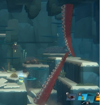1、每一轮把章鱼的触手清理干净后,它就会将眼睛露出来,这时候朝眼睛开枪射击→章鱼会因疼痛闭上眼睛,同时喷出墨汁将你吹回左边区域。