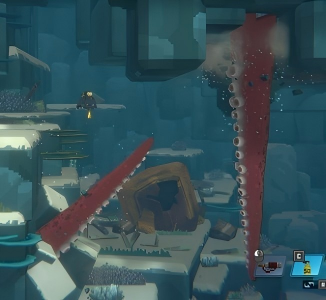 1、第一阶段:场上会随机出现两处白烟,随后触发触手突刺攻击。看到白烟时,只要垂直向上游动,基本就能避开攻击。