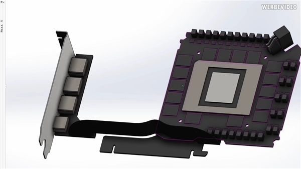 NorthridgeFix还发布了两张工程渲染图,呈现RTX 5090 FE的内部接口布局:主卡体型十分小巧,PCIe接口子卡直接装配于其上,而输出接口子卡则借助排线连接并延伸过来。