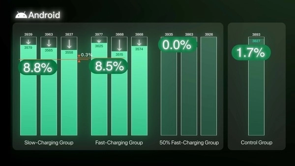 这表明在实际应用过程中,快速充电对电池健康几乎不会造成能被察觉到的影响。