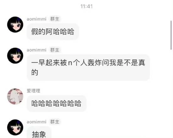 随后,Uzi的妻子奥咪咪在Q群里现身回应,对这件事进行了澄清和辟谣:“假的!一大早就被好多人轮番询问是不是真的,太离谱了!”